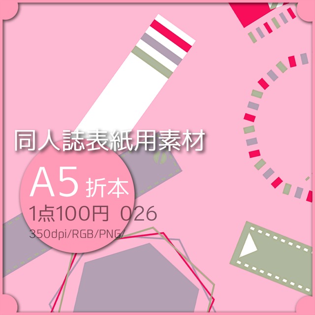 350dpi/RGB/PNGデータ A5サイズ向け 同人誌・冊子の表紙用素材 印刷用解像度 表1+表4(横303mm×縦216mm/4175pix:2976pix)のデザイン ---------------------------- 同人誌などの本の表紙に使える素材、1点100円のバラ売り素材です。 A5サイズの印刷物用のデータを収録しています。 印刷用に、上下左右各3ミリのマージンあり。 背幅の部分はありません。折本、中綴じ本、コピー本、などに適したサイズです。 ---------------------------- 本・冊子類の表紙(電子書籍を含む)への使用を意図して編集した画像ですが、それをご了承の上でご購入いただいたのであれば、使用の用途に制限はありません(サイズの拡大は推奨しません。AIによる補修もご遠慮ください)。 トリミング・編集・文字入れなどの加工自由 商用可/使用報告不要/二次配布禁止 なお、購入者以外の第三者が本素材を使用することは禁止します。 ----------------------------- ※本商品は、セット販売している素材の中から、1点のみを単品で購入可能としたものです。 ※1点100円なので、セット素材を購入するよりも割高になっています。またセット素材との重複購入にも意ください。 ※価格には、BASEのシステムに関する手数料が含まれています。