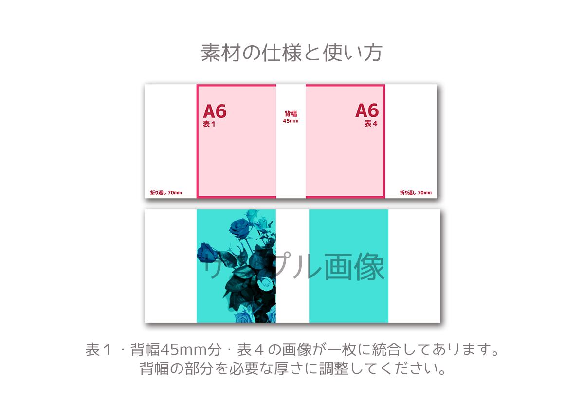 A5サイズの印刷物用のデータ、表1+背幅+表4・一体型のデザインを収録しています。