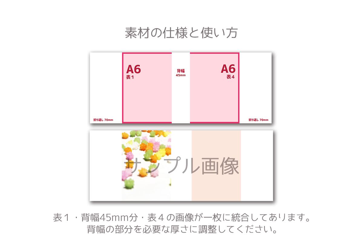 A5サイズの印刷物用のデータ、表1+背幅+表4・一体型のデザインを収録しています。