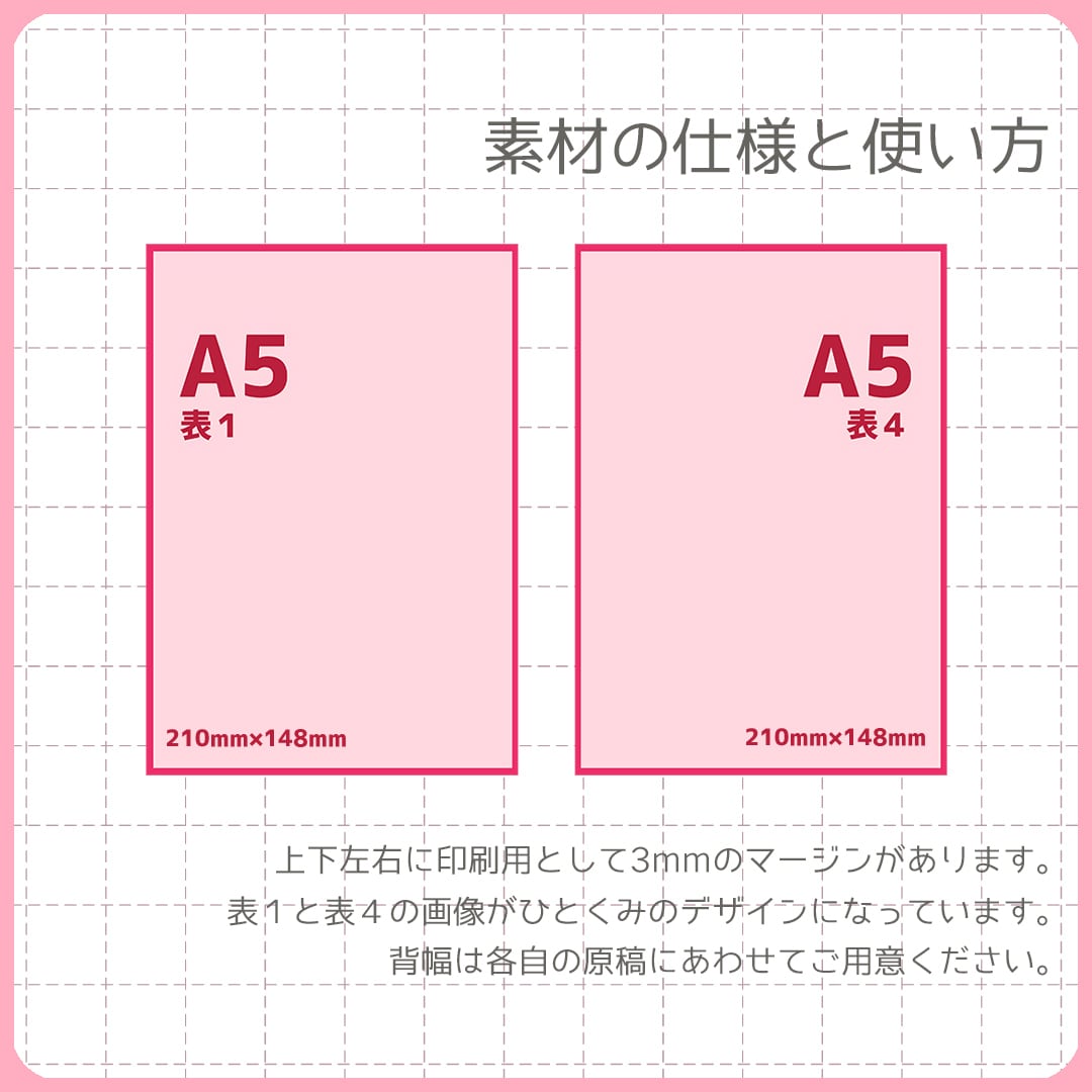 同人誌などの本の表紙にサイズ調整なしでそのまま使える素材集です。