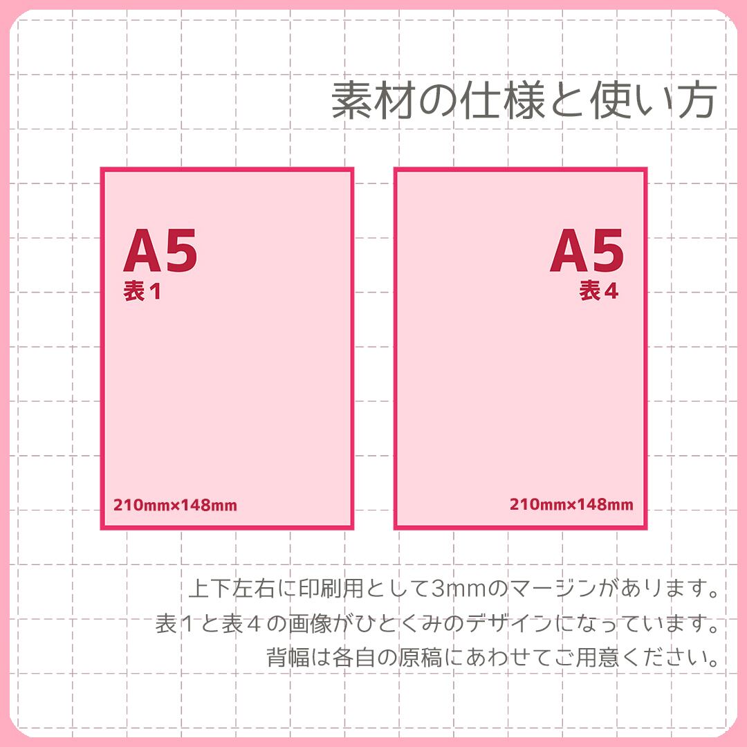同人誌などの本の表紙にサイズ調整なしでそのまま使える素材集です。